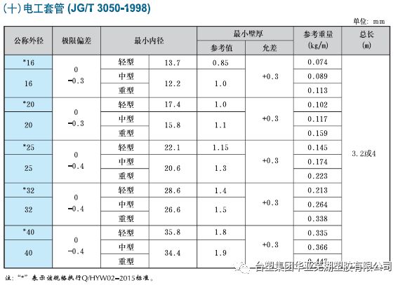 4、PVC電工套管規(guī)格:(JG/T3050-1998)