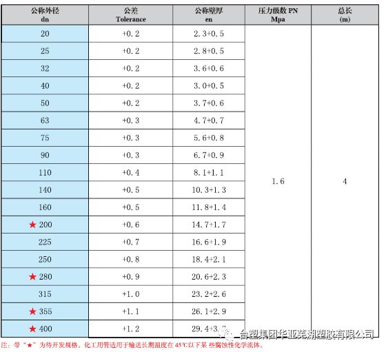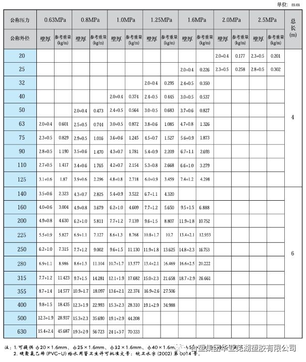 2、PVC化工管材規(guī)格:(GB/T4219.1-2008)