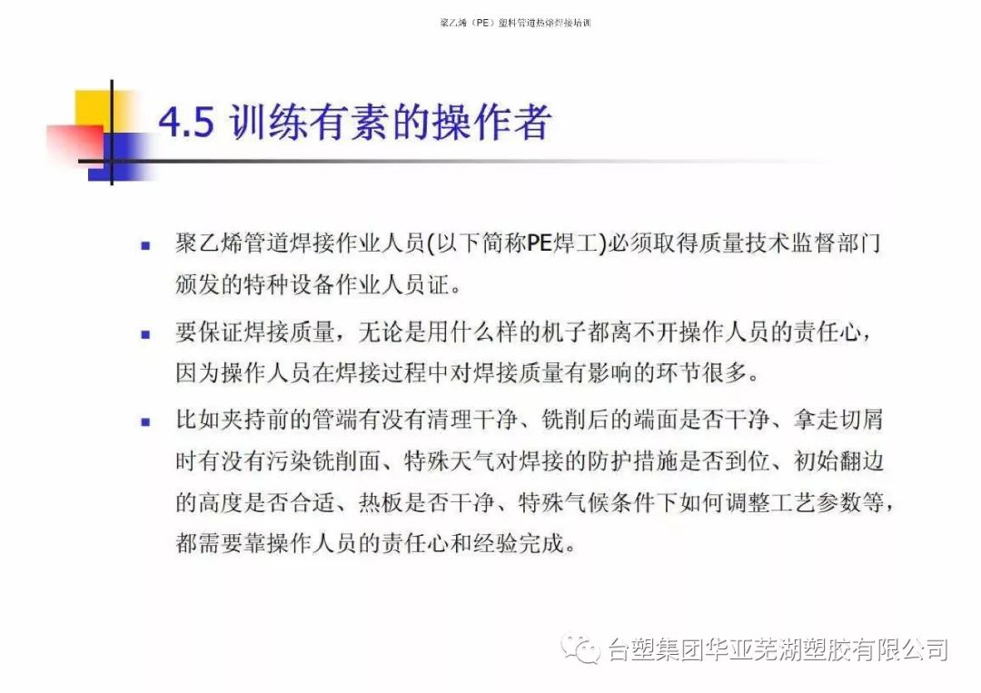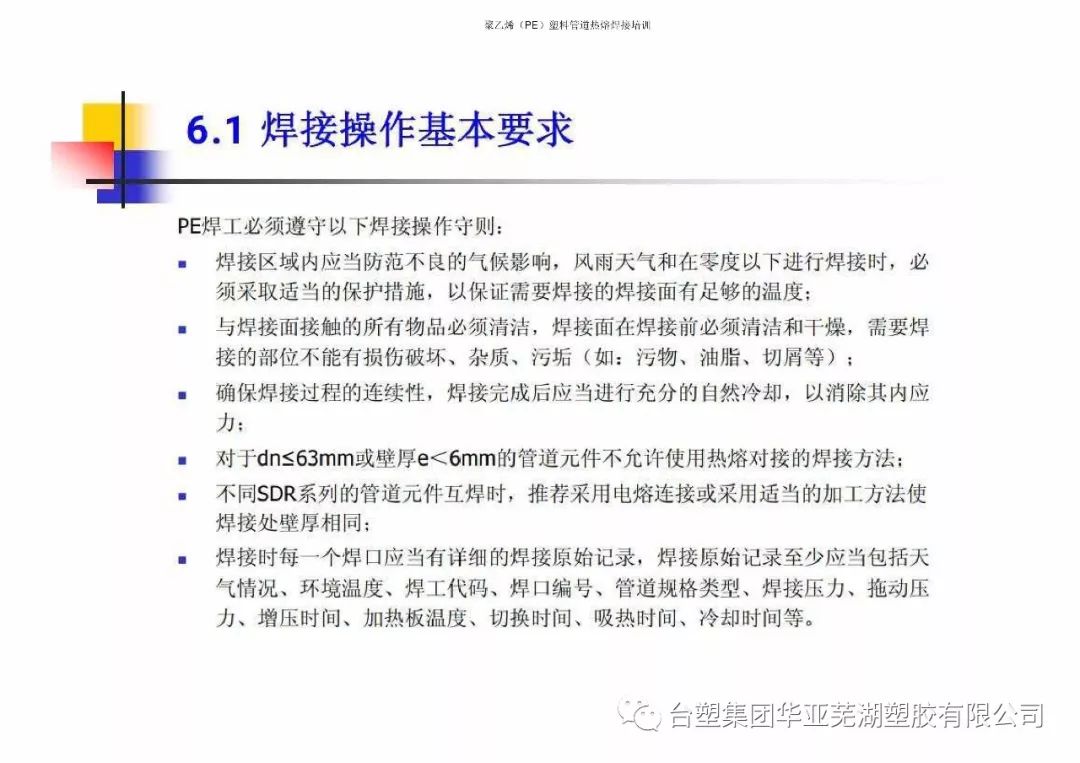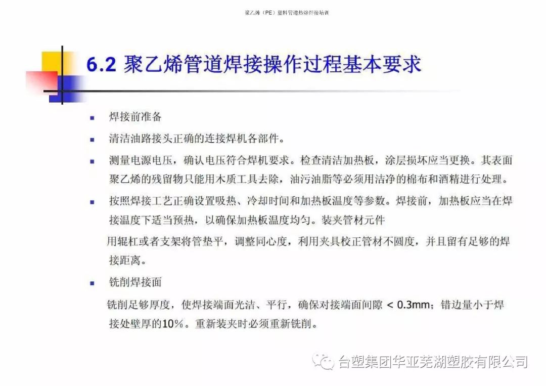 臺(tái)塑集團(tuán)華亞蕪湖塑膠有限公司聚乙烯(PE)熱熔焊接培訓(xùn)技術(shù)